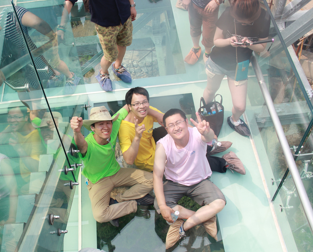第二天清晨,我们迎着朝阳开启了轻松、愉快的的短训,为充满挑战的一天补充正能量。早餐后,我们驱车来到了优美的石林峡风景区。分成六支小分队,开始了《国家宝藏》的任务,接头、对暗号、藏宝、画地图、寻宝、摆Poss!在景区里,队友们纵情穿梭在山水林荫间,呼吸着凉爽、清新的空气,感叹祖国大好河山的奇、秀、峻、险。在教练的有序带领、队友间的互帮互助和坚持不懈的努力下,团队齐聚天云山山顶、勇闯玻璃栈道。向下的临空眩晕感、向前的极目空旷感、徒步栈道的摇晃感,只有勇攀高峰、超越自我的我们能体味到、铭记住!