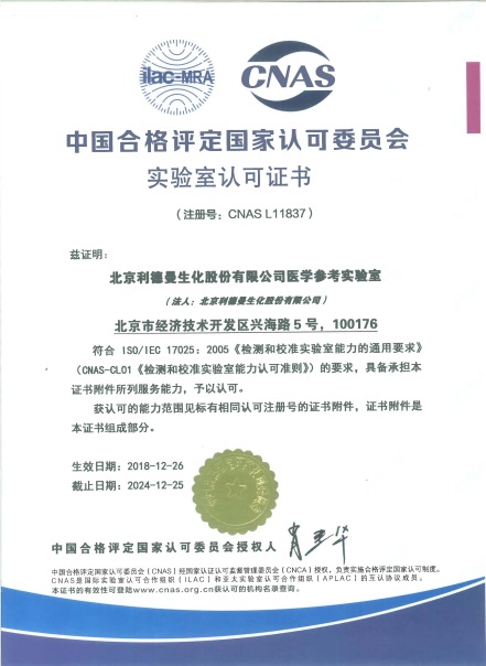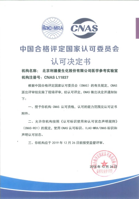 2018年12月26日,九游官方站网站入口医学参考实验室(以下称参考实验室)顺利通过中国合格评定国家认可委员会(CNAS)认可。