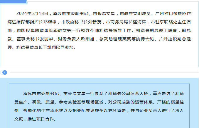 清远市市委副书记、市长温文星一行 莅临九游(中国)指导工作