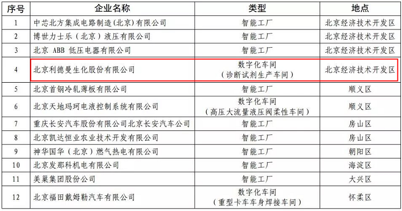 2018年北京市智能制造标杆企业名单