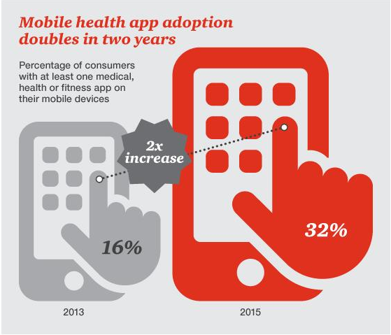 智能手机、互联医疗配件和APP仍尚未在医疗行业得以充分利用。在2016年,将医疗护理“掌上化”,将有助于降低成本,增加医疗服务获取途径,满足消费者“随时随地”监控、诊断和治疗的需要。